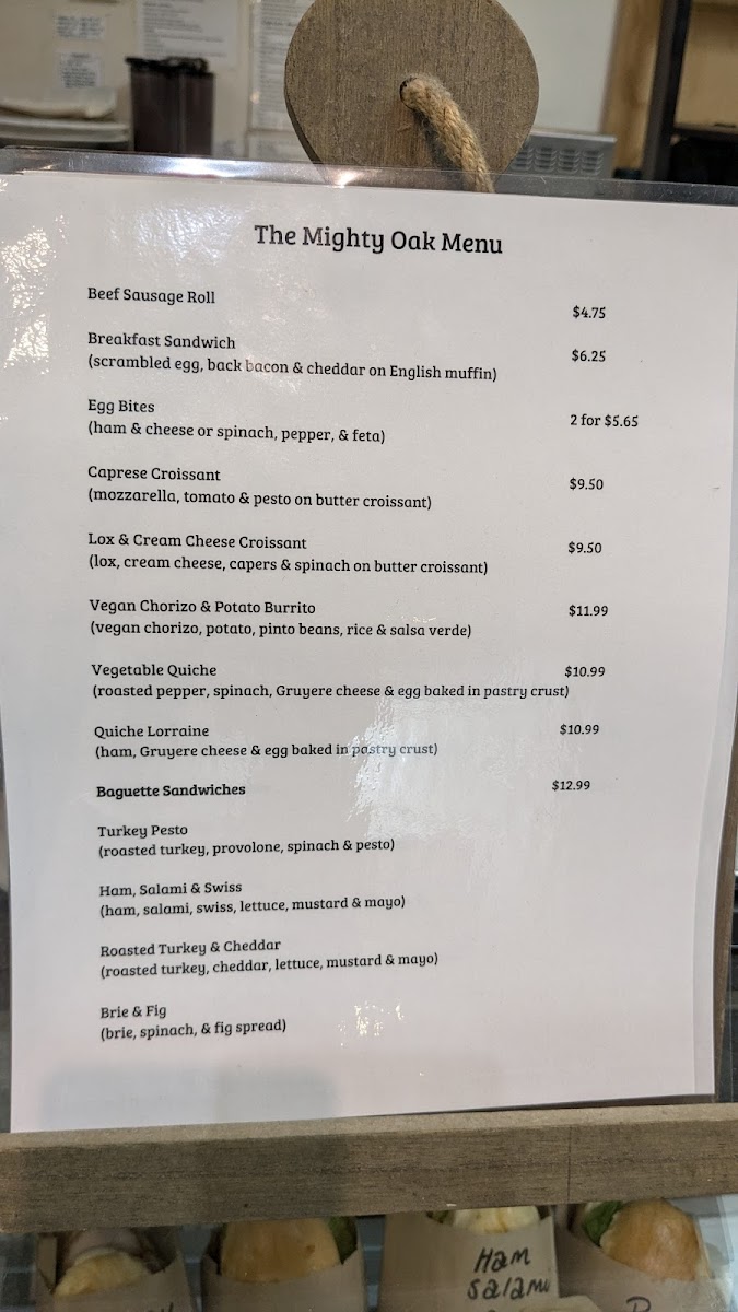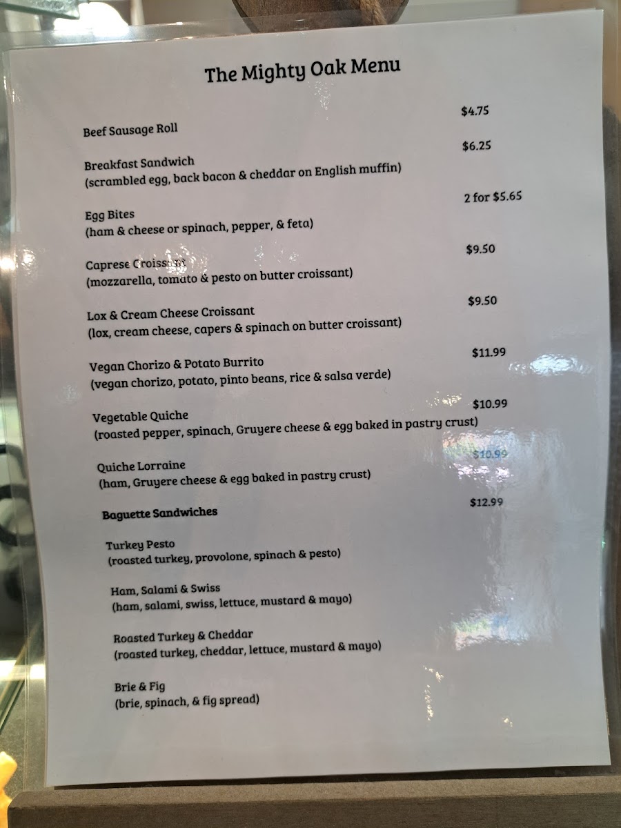 The Mighty Oak Menu